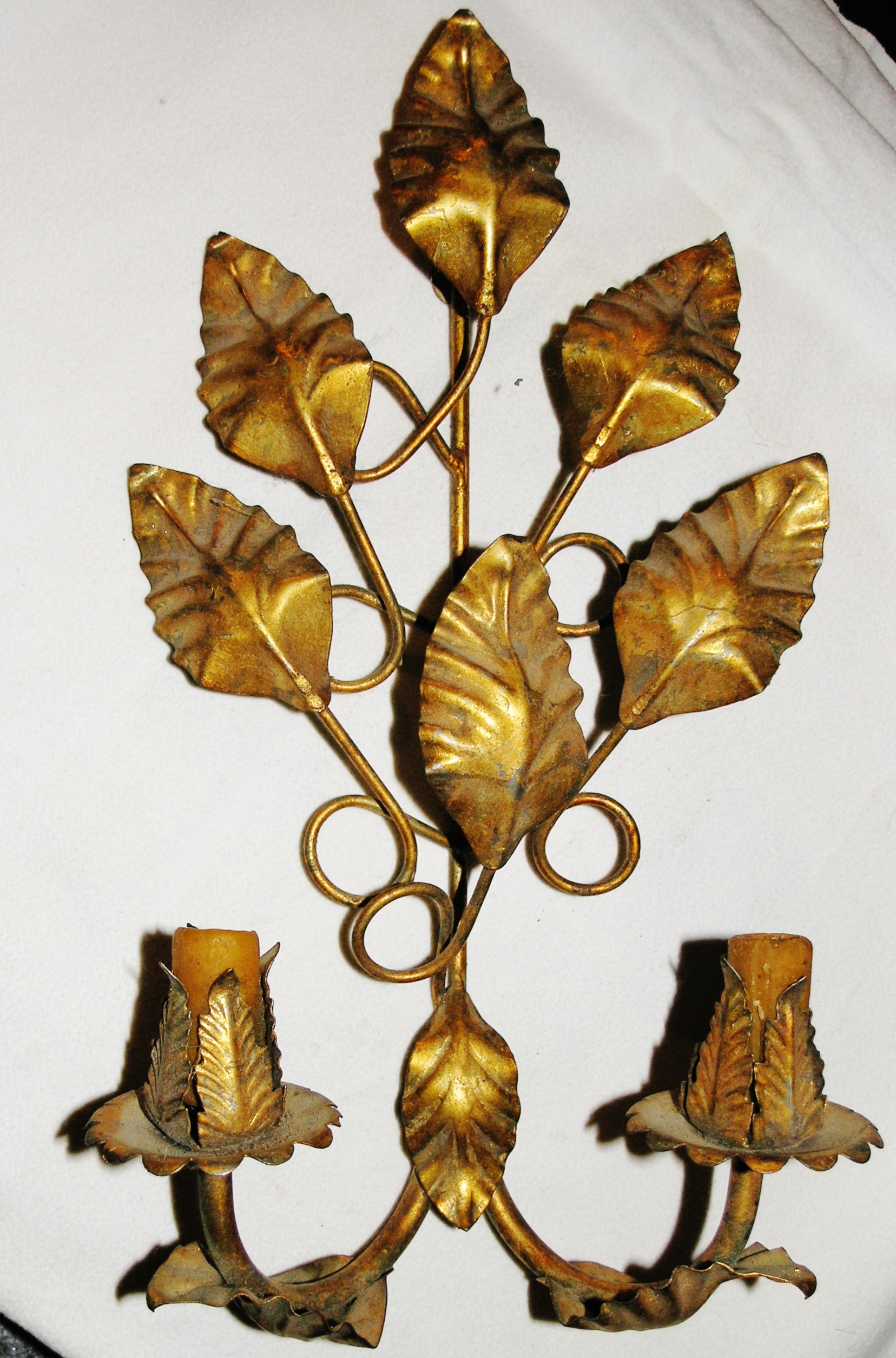 Hübsche Wandlampe für 2 Kerzen Goldbronze florentinisch